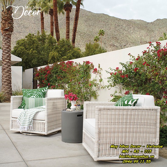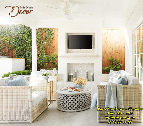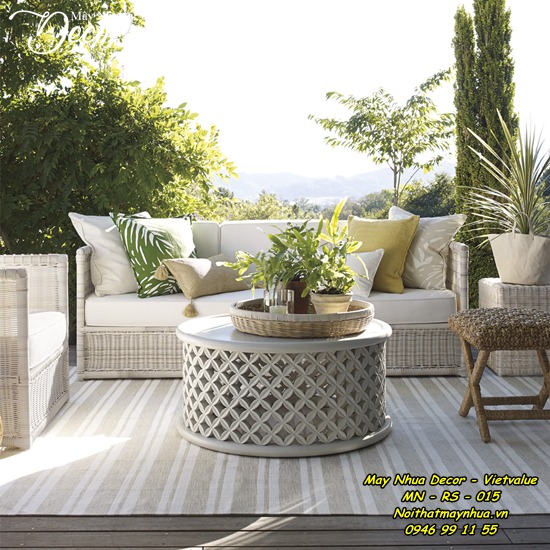 Không gian ngoài trời hay trong nhà của bạn sẽ hoàn hảo và ấm cúng hơn với bộ sofa MN-RS-015 được lấy cảm hứng từ vẻ đẹp tự nhiên của biển, chúng tôi đã thiết kế bộ sofa mây nhựa đan tay thủ công tinh tế từ sợi nhựa tổng hợp thách thức mọi điều kiện thời tiết nên rất bền và có thể để ngoài trời quanh năm.