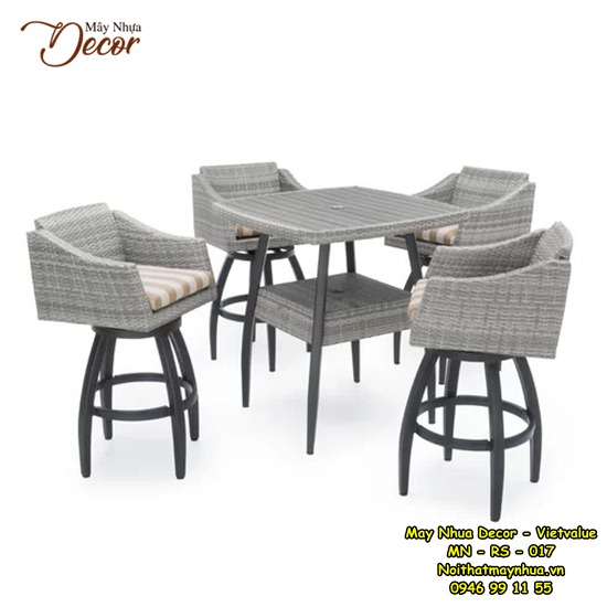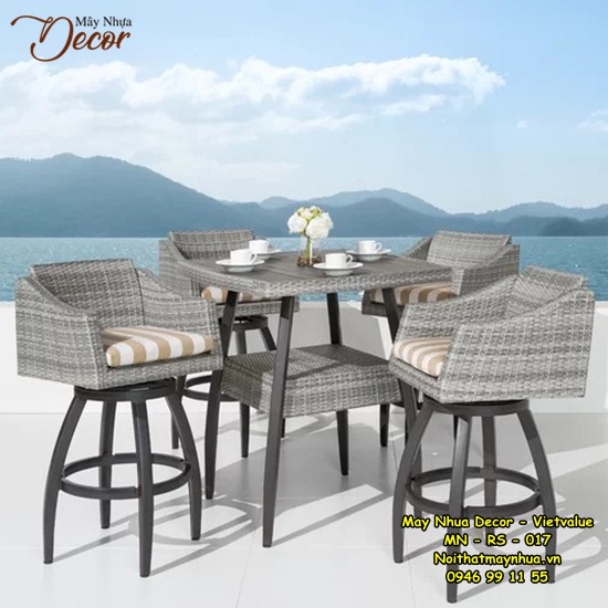 Tiếp khách ở không gian ngoài trời theo phong cách riêng của bạn với bộ bàn ghế bar cao sẽ giúp bạn cảm thấy thoải mái. Bên cạnh đó, bộ sản phẩm được làm từ những nguyên liệu phù hợp với mọi điều kiện thời tiết và nhẹ dễ dàng di chuyển nên có thể để ngoài trời quay năm mà vẫn bền đẹp.