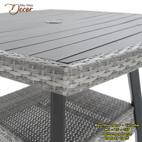 Bộ bàn ghế mây nhựa đan tay thủ công tinh xảo và hiện đại được thiết kế đặc biệt để sử dụng cho không gian ngoài trời. Lớp mây nhựa đã qua xử lý nên không phai màu và chịu được mọi điều kiện thời tiết.