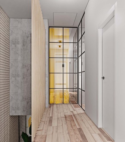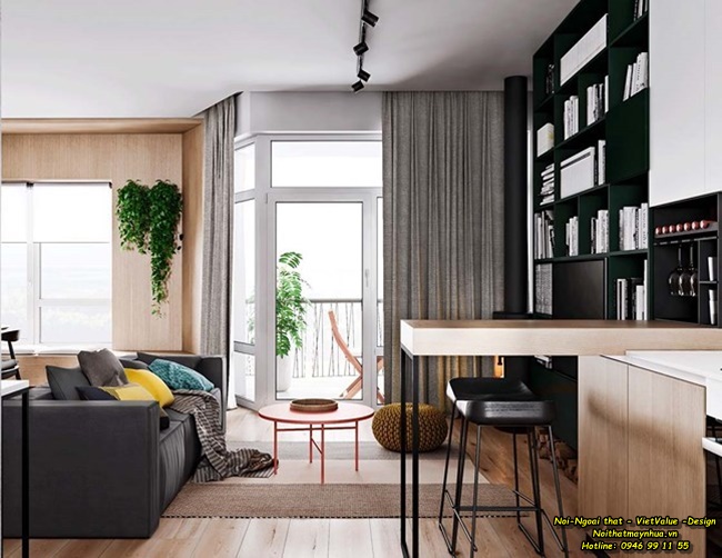 Cửa kính cho phép ánh sáng đi sâu vào bên trong căn hộ.