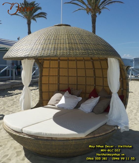 Kết cấu của Giường MN-GLC-022 được xây dựng bằng khung nhôm hoặc sắt sơn tĩnh điện chất lượng cao. Được đan bằng sợi mây nhựa cao cấp, có độ bền cao, chịu được nắng mưa, gió - không khí biển.