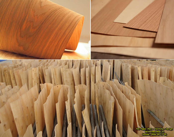 + Cấu tạo: Là gỗ tự nhiên được bóc thành lớp mỏng từ 0,3 - 1mm rộng 130-180mm. Thông thường được ép lên bề mặt gỗ dán plywood dày 3mm