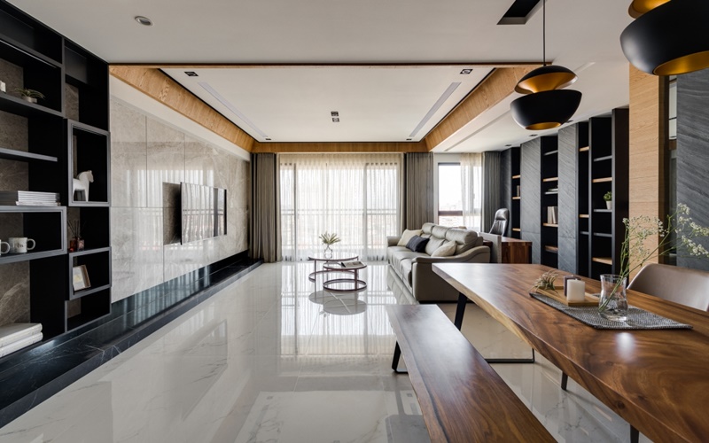 (Nội thất phòng khách đem đến cảm giác hài hòa, tươi mới. Thiết kế với màu sắc chủ đạo làm gam màu nâu trầm, gam màu chuyển tiếp dịu nhẹ hơn. Là lựa chọn hoàn hảo cho phong cách nội thất hiện đại.