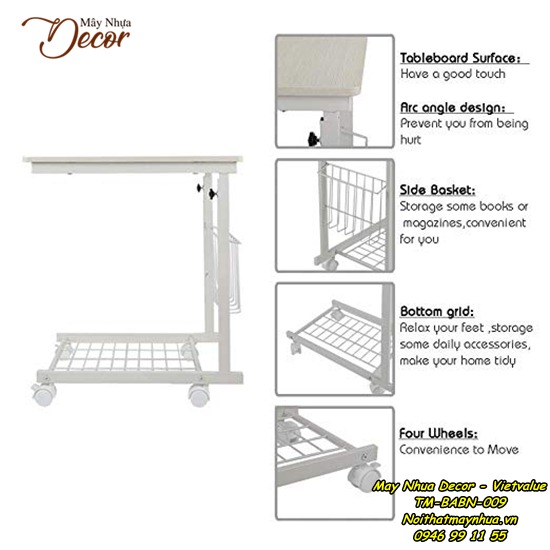 Do có 4 bánh xe nên có thể di chuyển bàn đến bất cứ chỗ nào theo nhu cầu của bạn mà không cần nỗ lực lớn, chỉ cần đẩy nhẹ nhàng; Ngoài ra, bánh xe có phanh khi bạn đẩy bàn tới bàn bạn cần Để ngăn bàn di chuyển, bạn chỉ cần nhấn nhẹ phanh, bàn sẽ không di chuyển nữa và thao tác rất đơn giản.