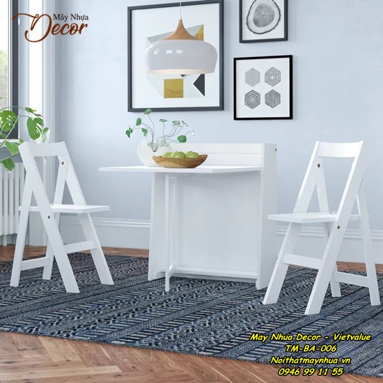 Thiết kế vô cùng thông minh của bộ bàn ăn TM - BA - 002 có thể phù hợp với mọi không gian. Bạn có thể gập bớt một cánh bàn khi có ít người cùng ngồi ăn hoặc mở rộng hết 3 phần mỗi khi gia đình có khách.
