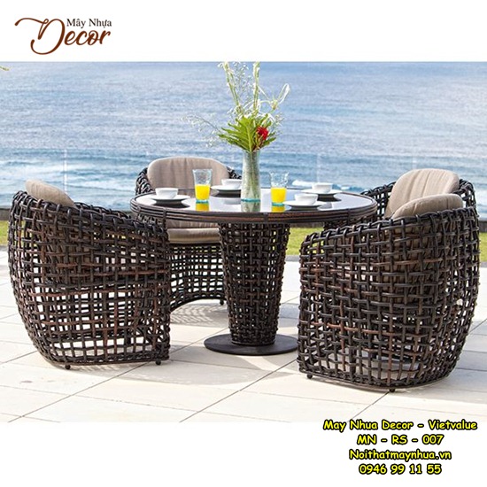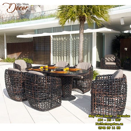 Không gian ngoài trời sẽ hoàn hảo và ấn tượng hơn với bộ sản phẩm mây nhựa ngoài trời sofa MN-RS-007 được lấy cảm hứng từ vẻ đẹp tự nhiên, dân dã rất gần gũi với nông thôn việt Nam, nhưng qua tài năng của các nhà thiết kế và được đan tay thủ công tinh tế đã tạo nên bộ sản phẩm độc đáo, thu hút mọi ánh nhìn.