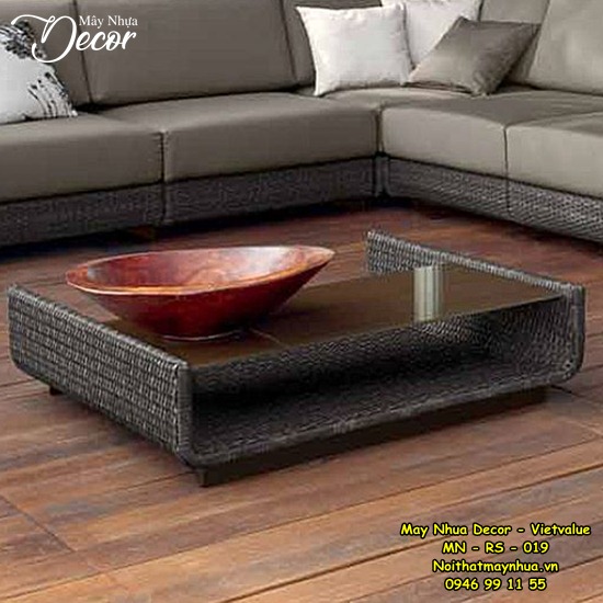 Bộ sofa RS 019 trở nên hoàn hảo khi kết hợp với 1 ghế đôn và 1 bàn trà thấp, bên trên một nửa là mặt kính và một nữa để trống nên bạn có thể tận dụng để đựng đồ.