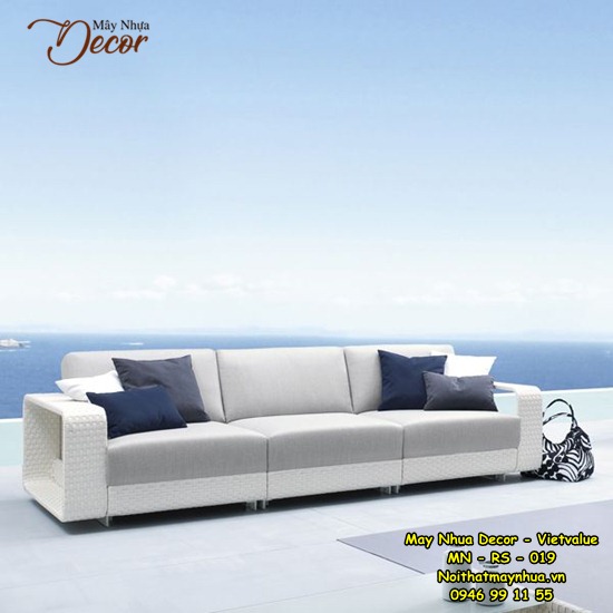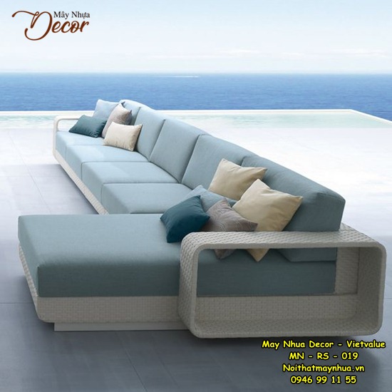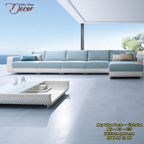 Bộ sofa MN-RS-019 được thiết kế theo phong cách Ý có kích thước lớn, đệm dày và được đan tay thủ công tỉ mỉ.