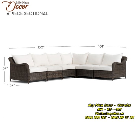 • Set 6 gồm : 1 ghế góc, 3 ghế bành không tay vịn, 1 ghế tay vịn trái và 1 ghế tay vịn phải (có kèm theo đệm ghế)