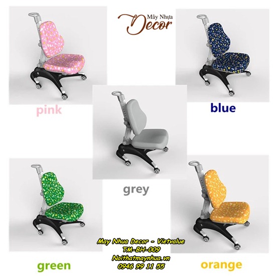 Ghế có 5 màu: xanh nước biển, hồng, ghi, cam, xanh lá cây