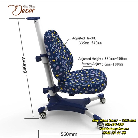- Có thể điều chỉnh được độ cao của ghế từ 33.5 cm đến 54 cm