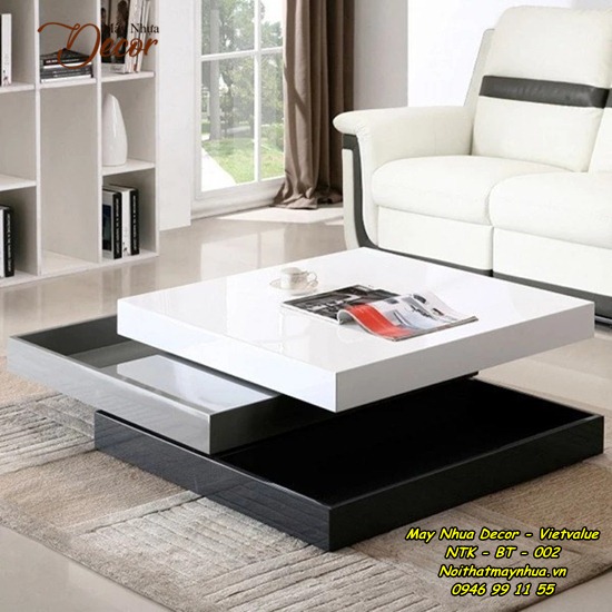 Với tính thẩm mỹ tối giản đẹp mắt, Bàn cà phê hiện đại chất lượng tốt nhất chắc chắn sẽ là tâm điểm của không gian sống của bạn. Bàn trà NTK-BT-002 là một bản nâng cấp ngay lập tức cho nội thất phòng khách của bạn với sự khéo léo, thông minh. Bàn có 3 phần, phần mặt bàn trên cùng có thể xoay 360 độ. Phần giữa cũng có thể xoay 360 độ. Rất tiện dụng phù hợp với mục đích sử dụng người dùng, đồng thời có thể thay đổi nhiều kiểu khác nhau, giúp cho căn phòng của bạn luôn được thay đổi tươi mới. Toàn bộ bàn được sơn mài phủ bóng hoàn thiện giúp lau chùi dễ dàng, độ bền cao khiến bàn trà này luôn trông như mới, tiện lợi cho vệ sinh và sử dụng.