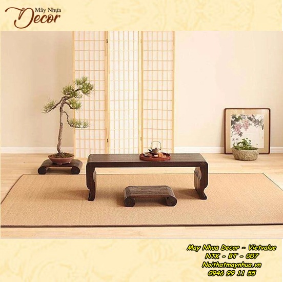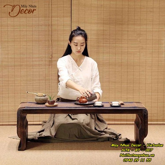 Bàn uống nước kiểu Nhật cổ thường có chân thấp gần sát mặt đất, sau khi cải tiến có dạng chữ U ngược với chân cao hơn để phù hợp với người ngồi. Bàn được làm từ gỗ tự nhiên với mặt vân gỗ nổi bật .