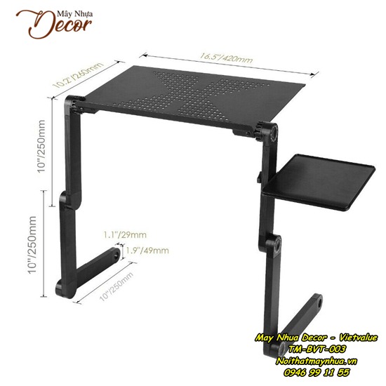 Bàn laptop thông minh TM-BVT-003 gấp gọn đa năng giúp bạn tăng hiệu quả làm việc mọi lúc, mọi nơi, dễ dàng sử dụng. Thời buổi công nghệ hiện nay hầu như ai cũng sắm cho mình một chiếc laptop, có thể hỗ trợ mọi người trong học tâp, chơi game hay trong công việc của mình.
