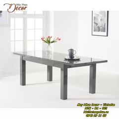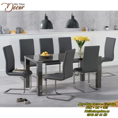 Bộ bàn ăn này tươi sáng có độ bóng cao, Chiều dài 160cm cho chỗ ngồi cho tối đa 6 thực khách. được thiết kế linh hoạt có hai bảng ẩn mở rộng để cung cấp chiều dài lớn hơn 220cm cho chỗ ngồi 10 thực khách . Kết hợp với 8 ghế với ghế bọc PU bóng , lưng ghế cao, chân ghế mạ crôm sáng bóng