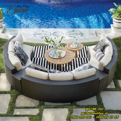 - Thiết kế theo hình bán nguyệt, các modun có thể tháo rời, tùy chỉnh theo góc độ, vị trí , được bọc và đan bằng sợi Mây nhựa cao cấp.