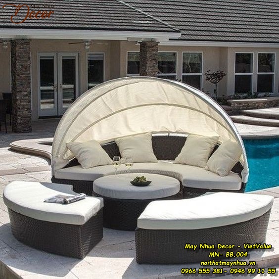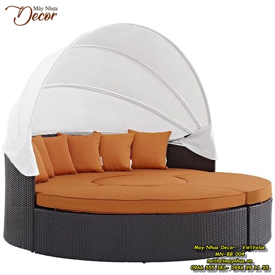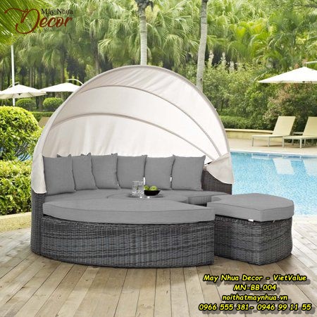 Giường tắm nắng - Bể Bơi Mây Nhựa - MN-BB.004 - Với kiểu dáng thiết kế hết sức sang trọng, được cấu tạo từ 5 modum riêng biệt, giúp cho khách hàng, người sử dụng thoải mái sáng tạo. Vừa là giường nằm tắm nắng, vừa là bàn ghế khi cần, có thêm phần mái che giúp khách hàng điều chỉnh được ánh sáng phù hợp với ánh nắng, thời tiết. Mỗi màu sắc của đệm, của sợi mây giả nhựa sẽ khiến khách hàng thích thú và nhiều lựa chọn.