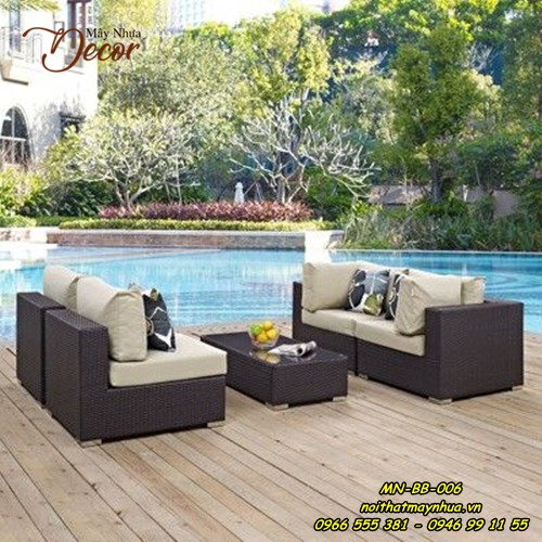 Ghế Sofa Bể Bơi Mây Nhựa - MN-BB.006 - Đây là một mẫu sofa Mây nhựa được sử dụng nhiều trong bố trí nội thất, ngoại thất. Mẫu này đưa vào khung cảnh bể bơi để quý khách tham khảo bổ xung thêm các góc nhìn khác nhau, kích thích sự sáng tạo trong việc bố trí không gian sao cho phù hợp. Nhỏ gọn, đơn giản, phối đệm dày là những ưu điểm của sản phẩm này.