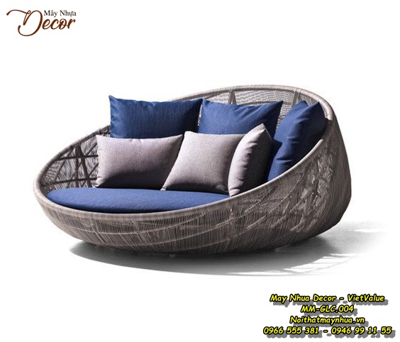 Sofa hình bầu dục được thiết kế để sống hài hòa với môi trường bên ngoài. Sắc màu xám của của chim bồ câu kết hợp đan thưa xen kẽ tạo độ thoáng và tầm nhìn xung quanh, sản phẩm gần gũi với thiên nhiên.
