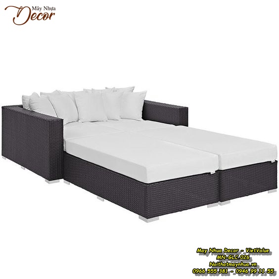 Bộ sản phẩm có thể linh hoạt sắp xếp để phù hợp với nhu cầu sử dụng của bạn. Bạn có thể đặt bộ giường này ở trong vườn hoặc bên hồ bơi để thư giãn tận hưởng không khí trong lành.