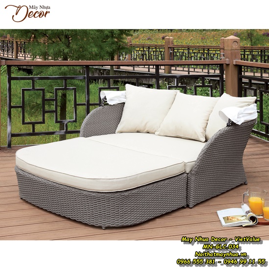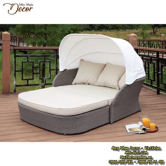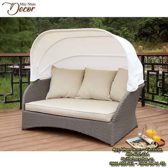 Nếu như bạn thích nghỉ ngơi thư gian ngoài trời thì bộ sofa giường MN-GLC-034 mang phong cách đương đại kèm theo tấm màn che sẽ là lựa chọn hàng đầu của bạn.