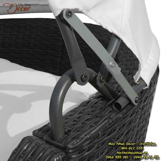 Bộ giường ngoài trời được làm bằng sợi mây tổng hợp đan tay thủ công và khung sắt sơn tĩnh điện không gỉ thích hợp với mọi điều kiện thời tiết.