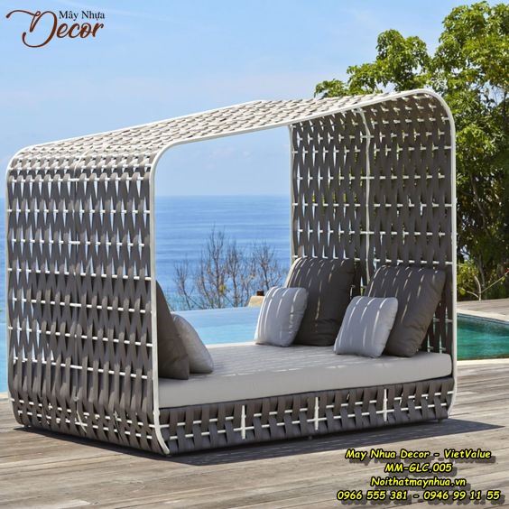 Bộ sofa giường GLC 005 có vẻ ngoài vô cùng quyến rũ, rất hoàn hảo cho bộ nội thất ngoài trời của bạn, bạn có thể kê chiếc sofa giường này ở ngoài vườn hay bên bể bơi.