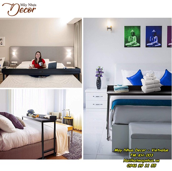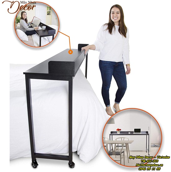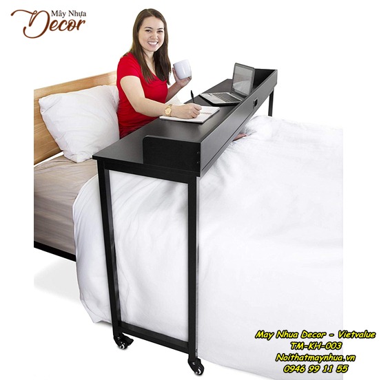 Với bộ sản phẩm TM - KH - 003 có bốn bánh lăn giúp kệ bàn dễ dàng lăn qua chiều dài giường để thiết lập một bàn làm việc tại nhà thoải mái nhất. Bề mặt lớn có thể vừa với điện thoại, máy tính xách tay và bất cứ thứ gì bạn cần.