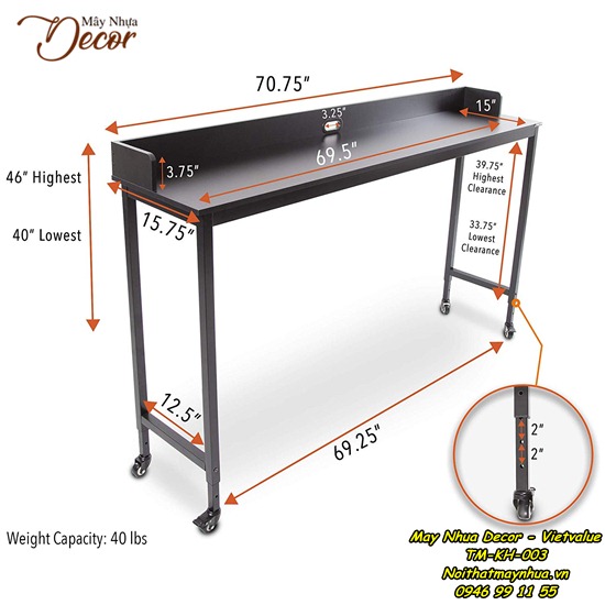 - Có thể di chuyển kệ bàn thuận lợi trong phòng