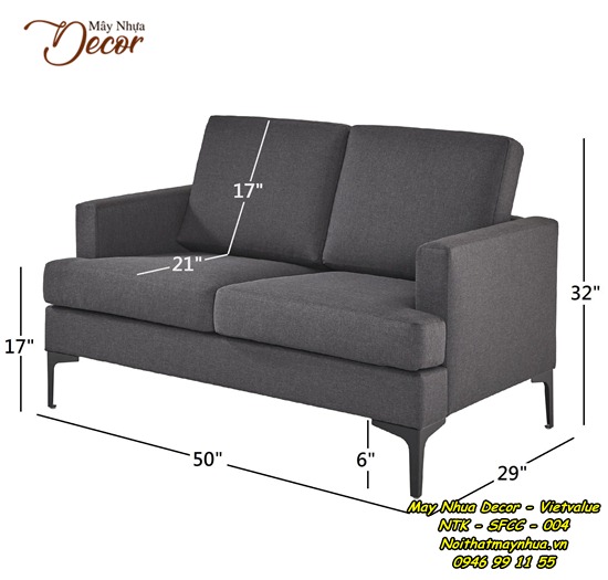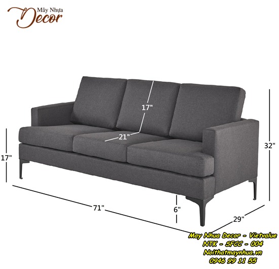 - Kích thước lòng sofa : Sâu 21" (53cm ) x cao 17" (43cm )