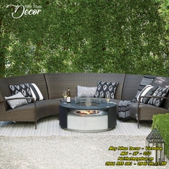 Bộ sofa hình vòng cung kết hợp đẹp mắt giữa ghế sofa giữa và 2 ghế sofa tay vịn hai  bên. Bí quyết cho sự thoải mái của bộ sofa này là lớp đệm mỏng ẩn bên dưới và ghế và lưng tựa. Khung của bộ sofa được làm từ sắt sơn tĩnh điện không gỉ nên có độ bên và chống chịu được mọi thời tiết.