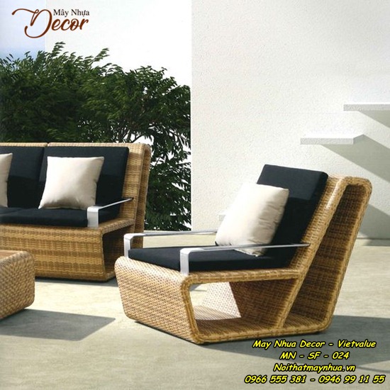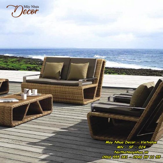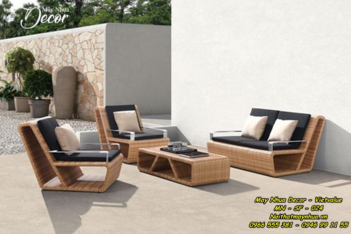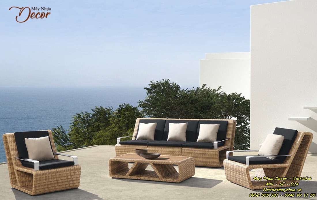Bộ Sofa MN-SF-024 thuộc dòng nội thất mây nhựa cao cấp. Bộ ghế ngồi thanh lịch dành cho 4 người. Với hai ghế đơn thoải mái, ghế sofa đôi thanh lịch và bàn cà phê thấp là sự kết hợp đơn giản nhưng sang trọng.