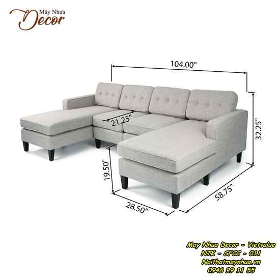 - Cánh tay phải và tay trái: Sâu 58,75" x Rộng 28,50" x Cao 32,25" (Sâu 149cm x Rộng 72 cm x Cao 82 cm)
