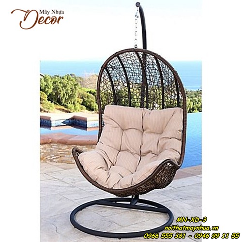 Xích Đu Sân Vườn- bọc nhựa giả mây mẫu MN-XD.03 được thiết kế đơn giản hơn, trọng lượng nhẹ hơn mẫu khác, nhưng không kém vẻ sang trọng, tinh tế. Với mẫu này, rất phù hợp với phối cảnh Sân Vườn, Ban Công, Phòng Sách, Bong tàu, Bể Bơi v.v... Có nhiều màu sắc để khách hàng lựa chọn, ngoài các sản phẩm tiêu chuẩn. Quý khách có thể đặt hàng theo Kích thước, mẫu mã, chất lượng để phù hợp với mục đích đầu tư của Quý vị và mang lại hiệu quả trong giá trị và mục đích sử dụng.