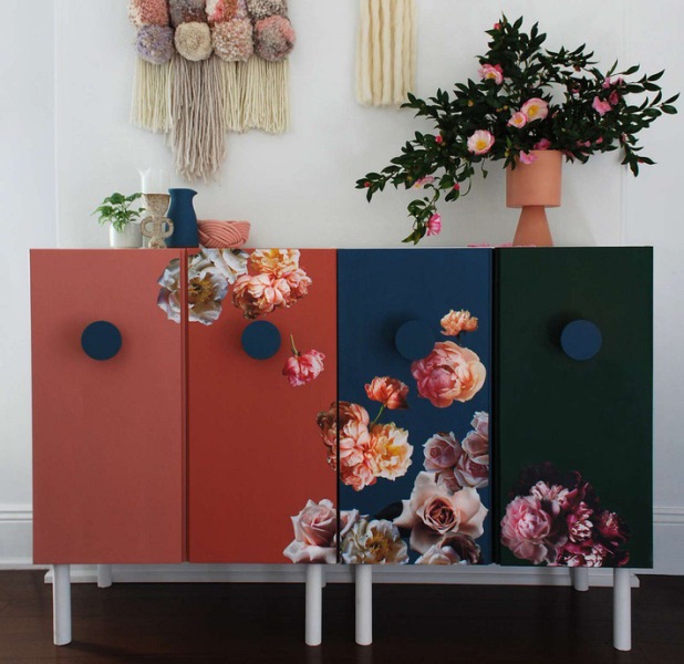 Được thiết kế bởi Lisa Tilte, chiếc tủ này được định hướng sẽ đặt ngoài lành lang bên cạnh phòng ngủ. Với các hoa văn là bông hoa to bản, màu sắc nóng trầm đan xen đã giúp tạo điểm nhấn đặc biệt.